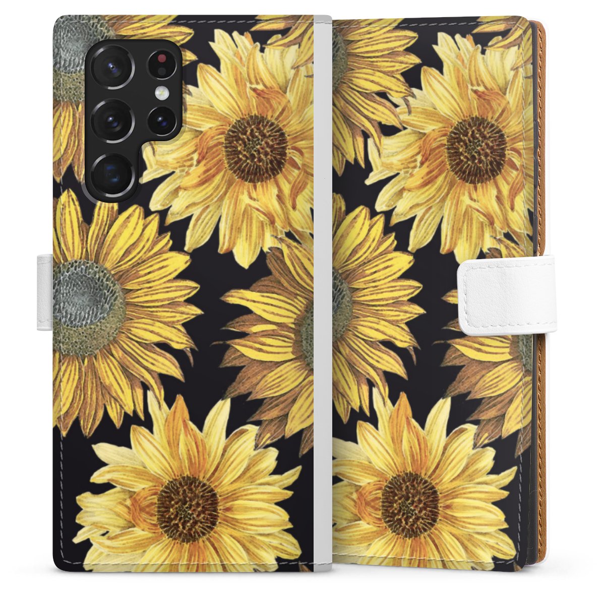 For our Sideflip Case we are using our advanced direct printing technology. The back and frontside are fully printabale, the inside of the phone bag is left unprinted. You can order the phone case without print, printed completely or also with a partial print.