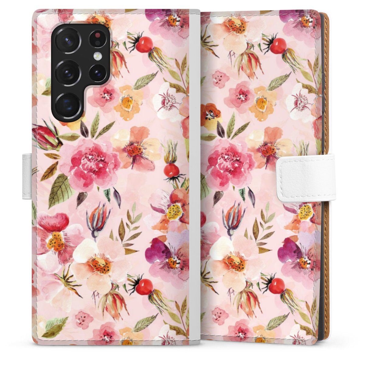 For our Sideflip Case we are using our advanced direct printing technology. The back and frontside are fully printabale, the inside of the phone bag is left unprinted. You can order the phone case without print, printed completely or also with a partial print.