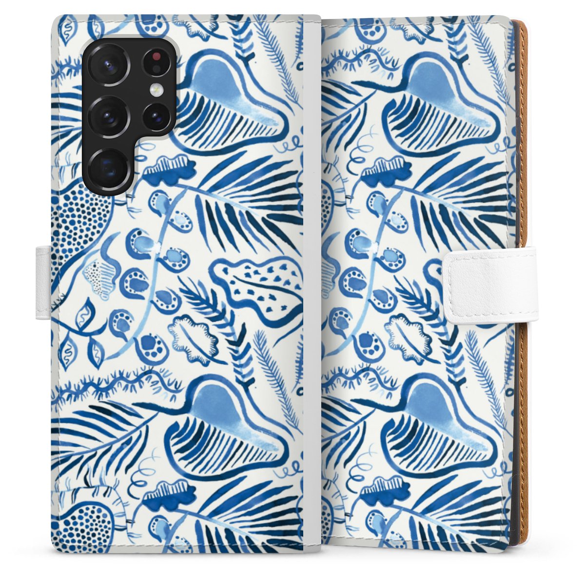 For our Sideflip Case we are using our advanced direct printing technology. The back and frontside are fully printabale, the inside of the phone bag is left unprinted. You can order the phone case without print, printed completely or also with a partial print.