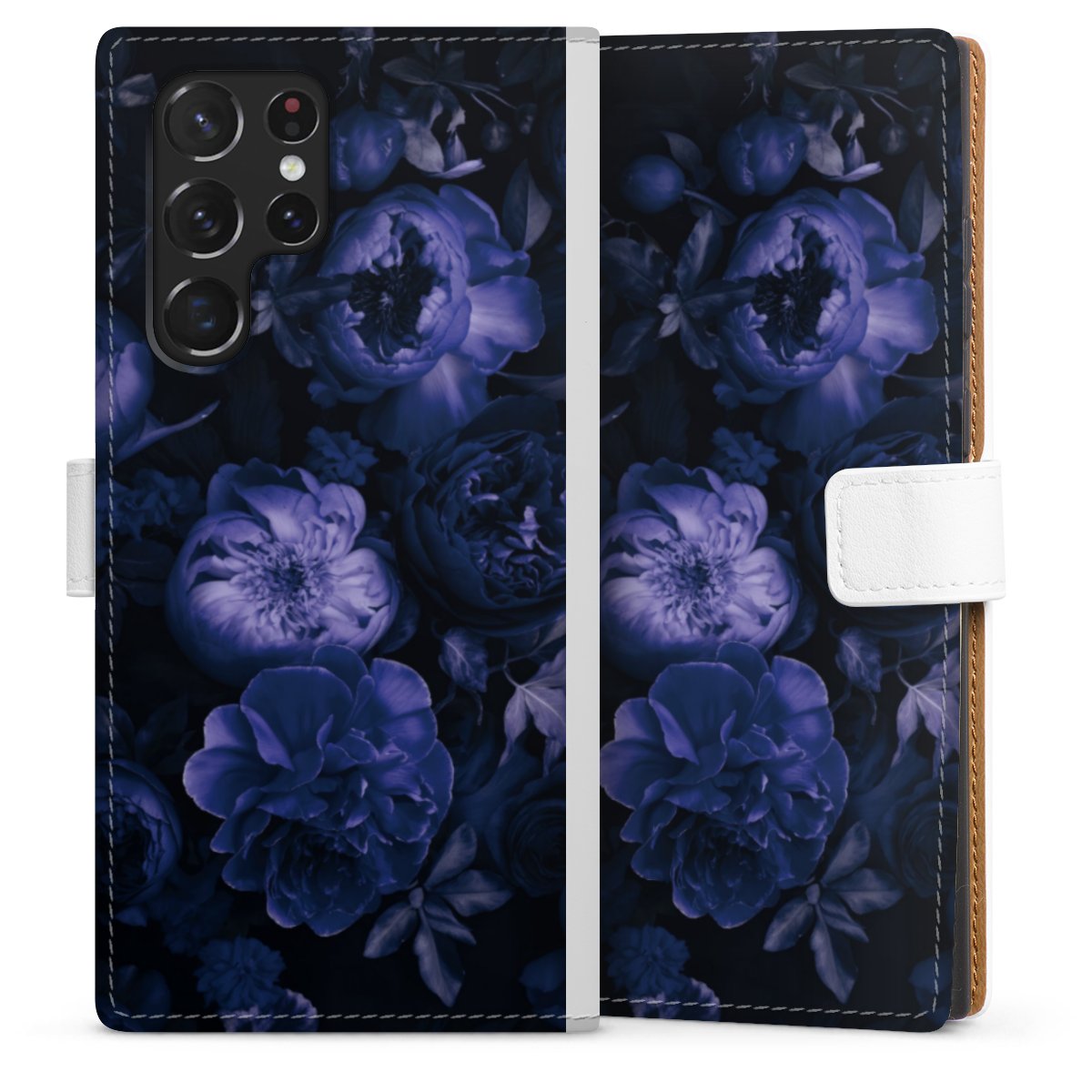 For our Sideflip Case we are using our advanced direct printing technology. The back and frontside are fully printabale, the inside of the phone bag is left unprinted. You can order the phone case without print, printed completely or also with a partial print.
