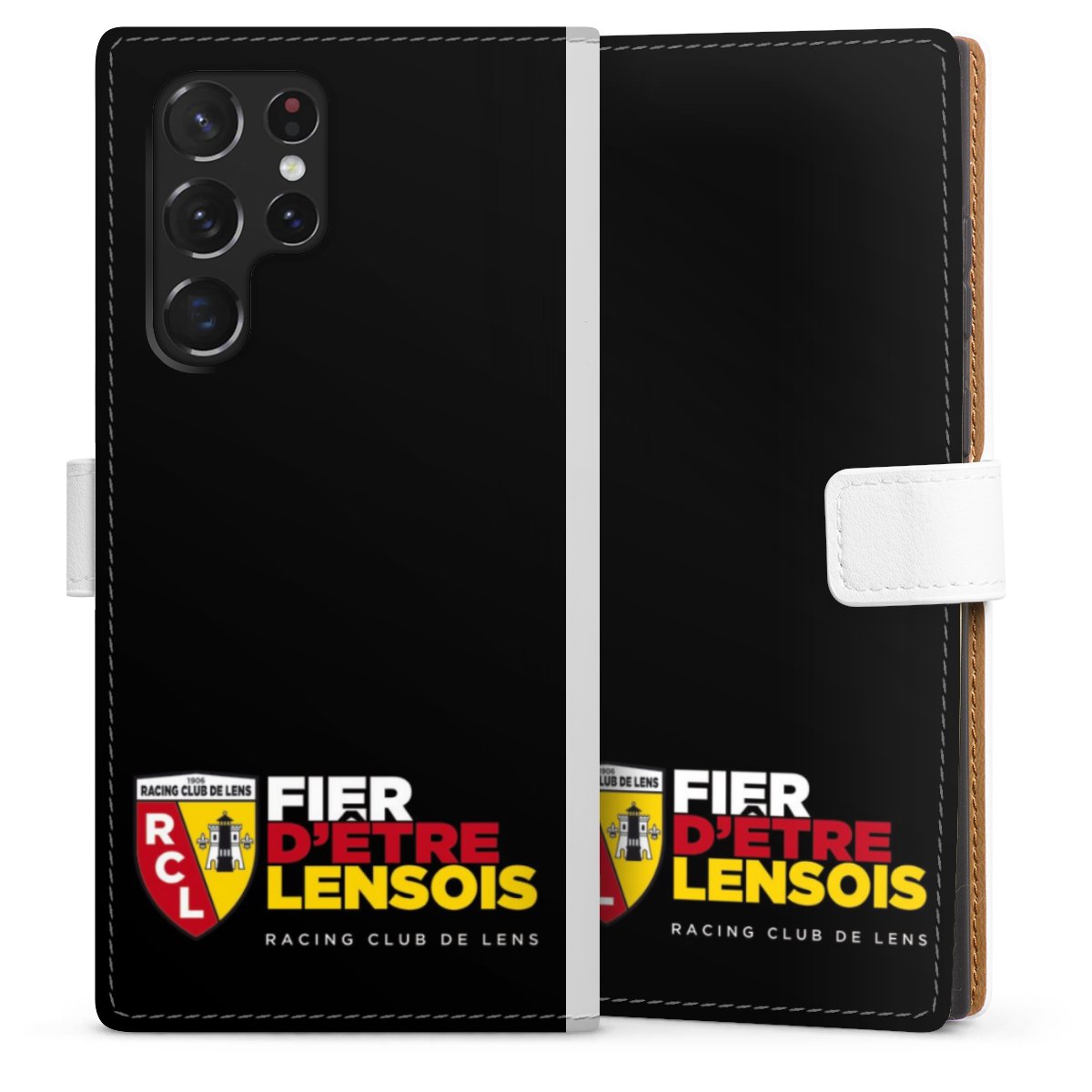 For our Sideflip Case we are using our advanced direct printing technology. The back and frontside are fully printabale, the inside of the phone bag is left unprinted. You can order the phone case without print, printed completely or also with a partial print.