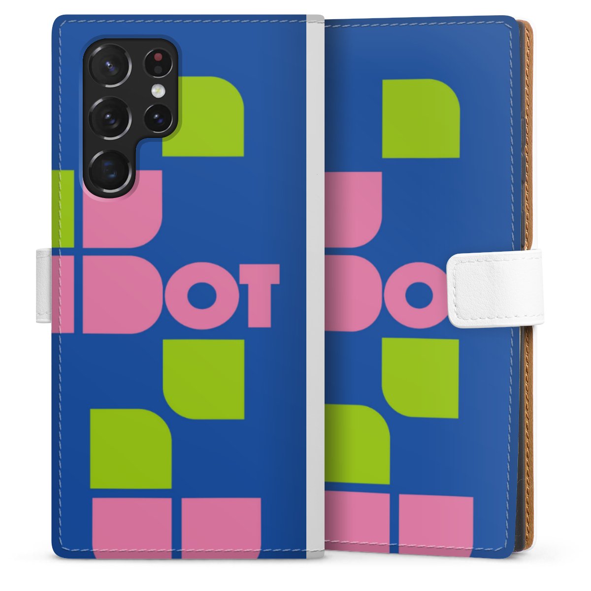 For our Sideflip Case we are using our advanced direct printing technology. The back and frontside are fully printabale, the inside of the phone bag is left unprinted. You can order the phone case without print, printed completely or also with a partial print.