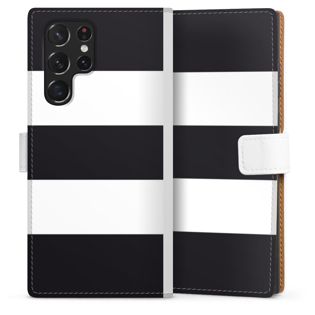 For our Sideflip Case we are using our advanced direct printing technology. The back and frontside are fully printabale, the inside of the phone bag is left unprinted. You can order the phone case without print, printed completely or also with a partial print.