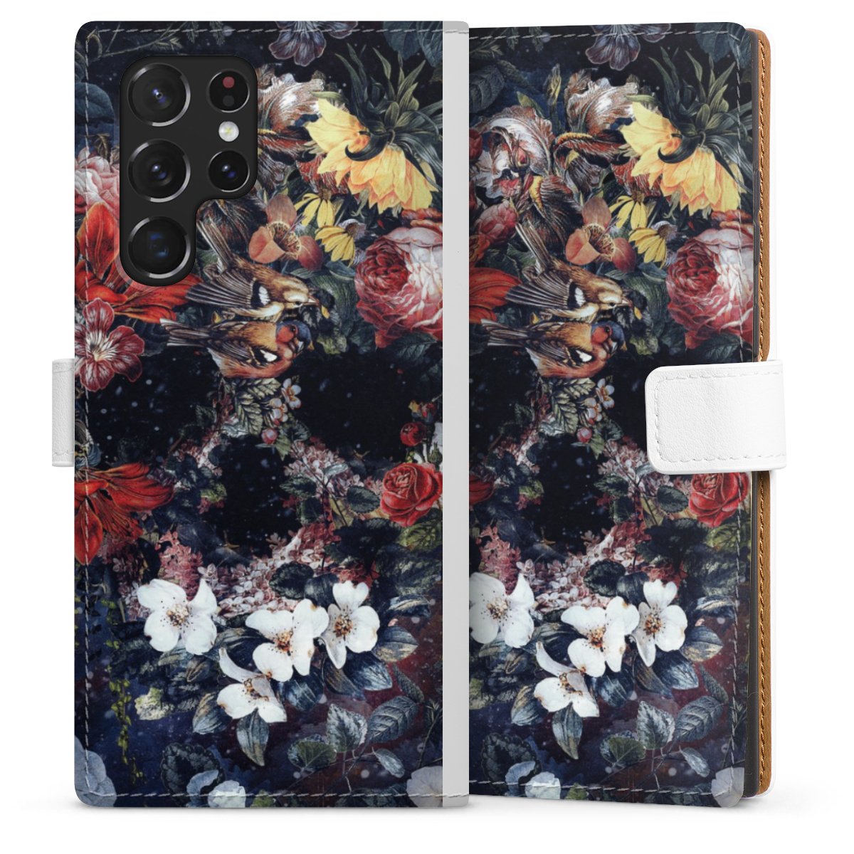 For our Sideflip Case we are using our advanced direct printing technology. The back and frontside are fully printabale, the inside of the phone bag is left unprinted. You can order the phone case without print, printed completely or also with a partial print.