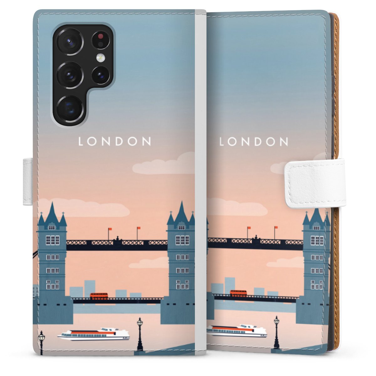 For our Sideflip Case we are using our advanced direct printing technology. The back and frontside are fully printabale, the inside of the phone bag is left unprinted. You can order the phone case without print, printed completely or also with a partial print.