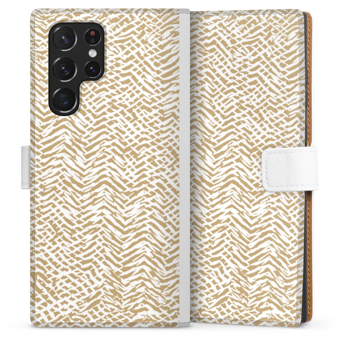 For our Sideflip Case we are using our advanced direct printing technology. The back and frontside are fully printabale, the inside of the phone bag is left unprinted. You can order the phone case without print, printed completely or also with a partial print.