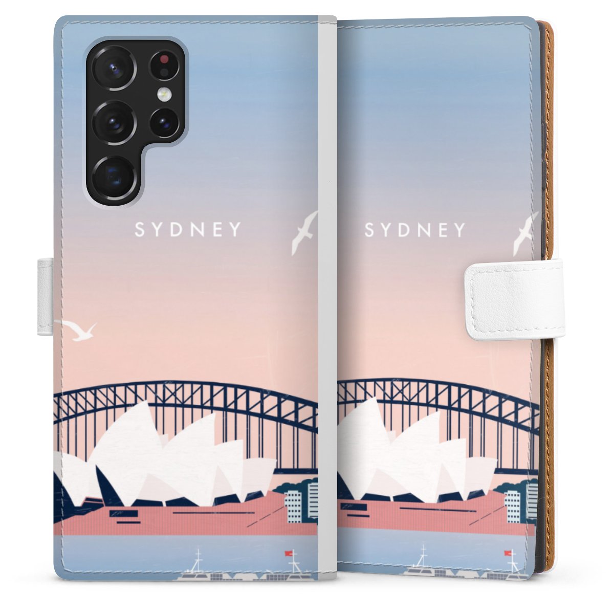For our Sideflip Case we are using our advanced direct printing technology. The back and frontside are fully printabale, the inside of the phone bag is left unprinted. You can order the phone case without print, printed completely or also with a partial print.