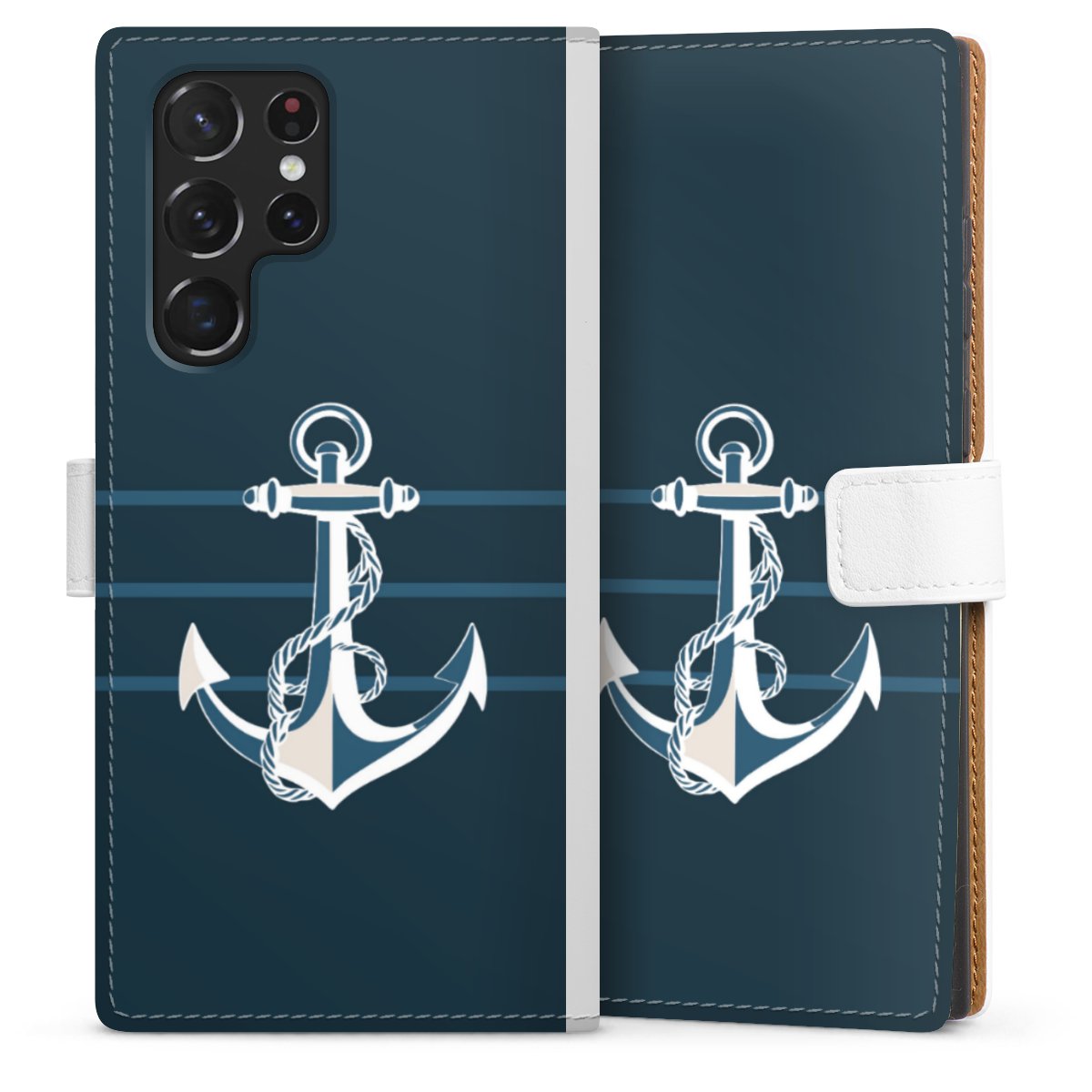 For our Sideflip Case we are using our advanced direct printing technology. The back and frontside are fully printabale, the inside of the phone bag is left unprinted. You can order the phone case without print, printed completely or also with a partial print.
