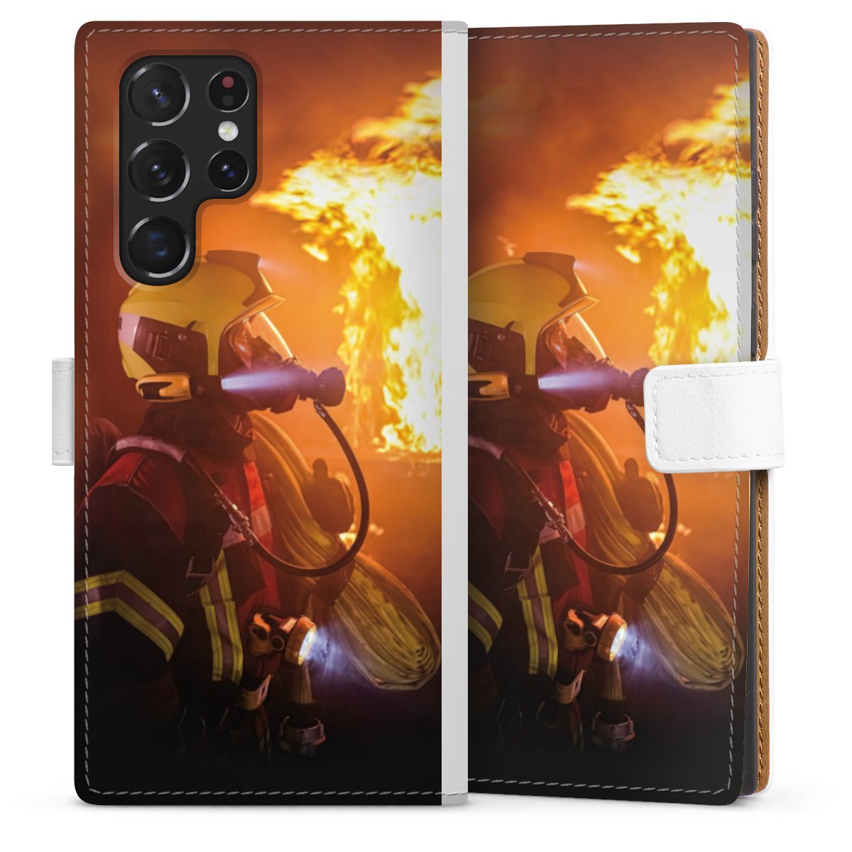 For our Sideflip Case we are using our advanced direct printing technology. The back and frontside are fully printabale, the inside of the phone bag is left unprinted. You can order the phone case without print, printed completely or also with a partial print.