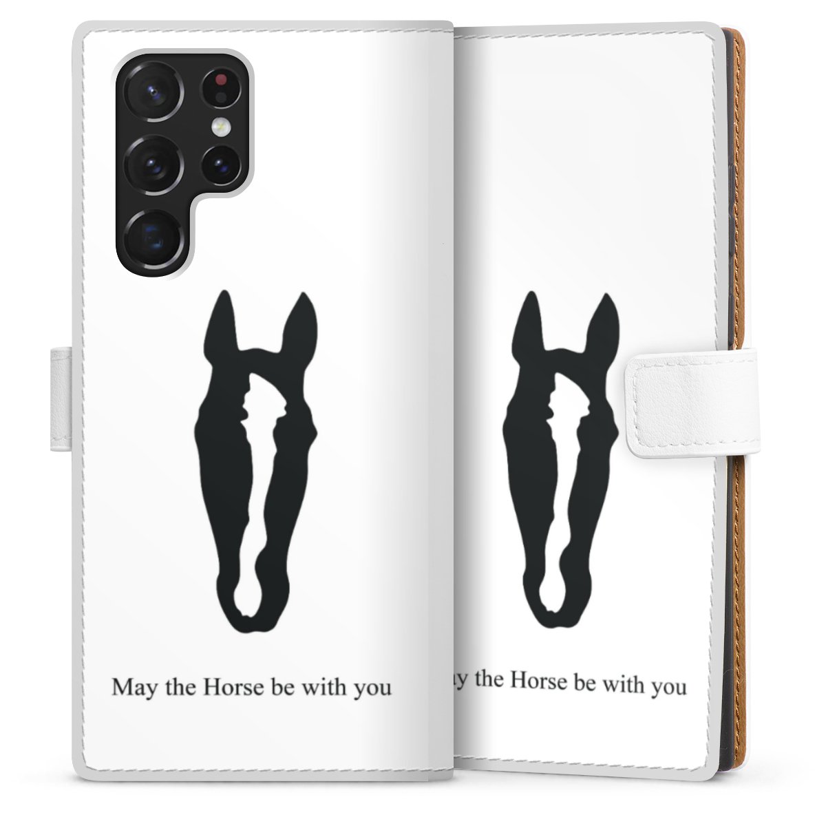 For our Sideflip Case we are using our advanced direct printing technology. The back and frontside are fully printabale, the inside of the phone bag is left unprinted. You can order the phone case without print, printed completely or also with a partial print.