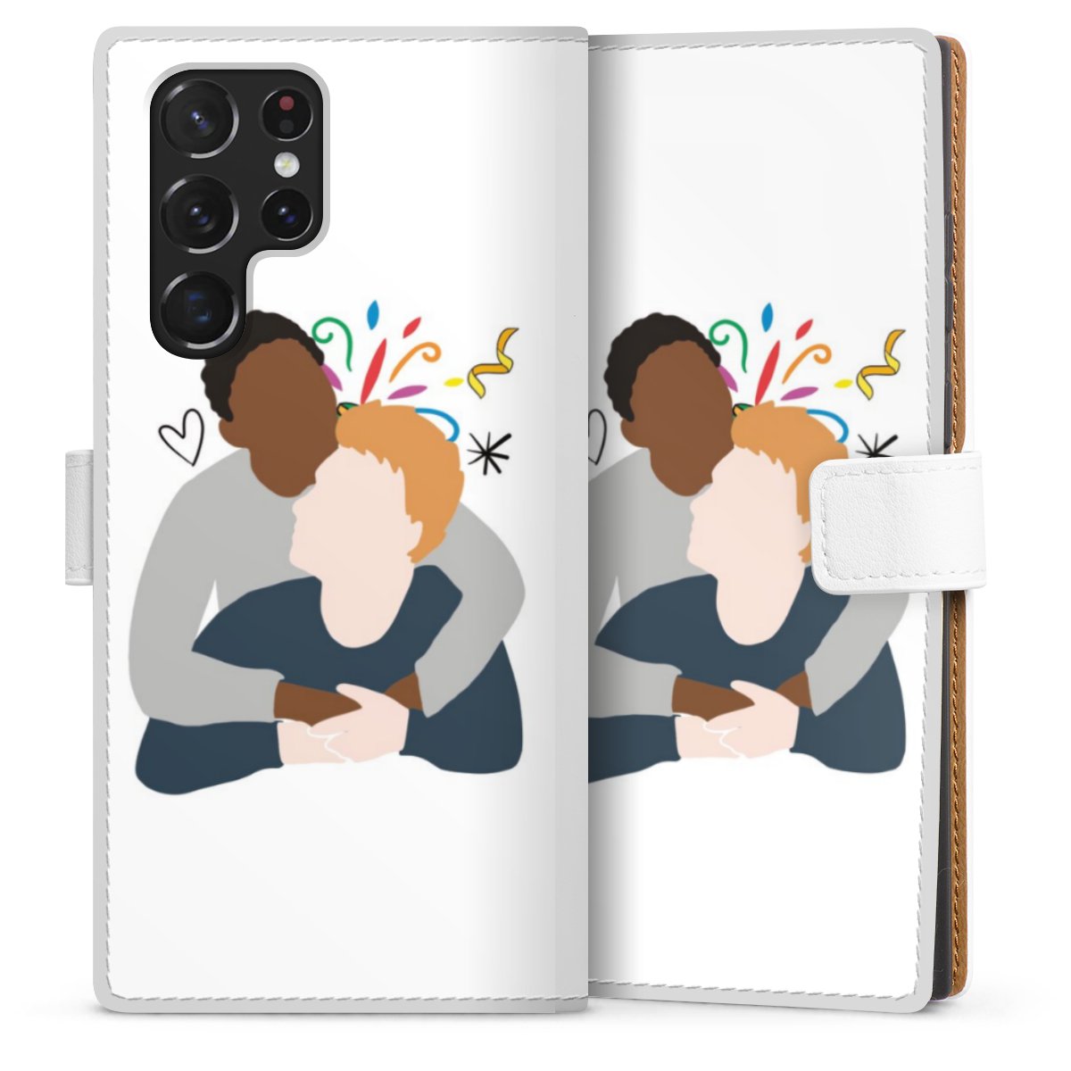For our Sideflip Case we are using our advanced direct printing technology. The back and frontside are fully printabale, the inside of the phone bag is left unprinted. You can order the phone case without print, printed completely or also with a partial print.