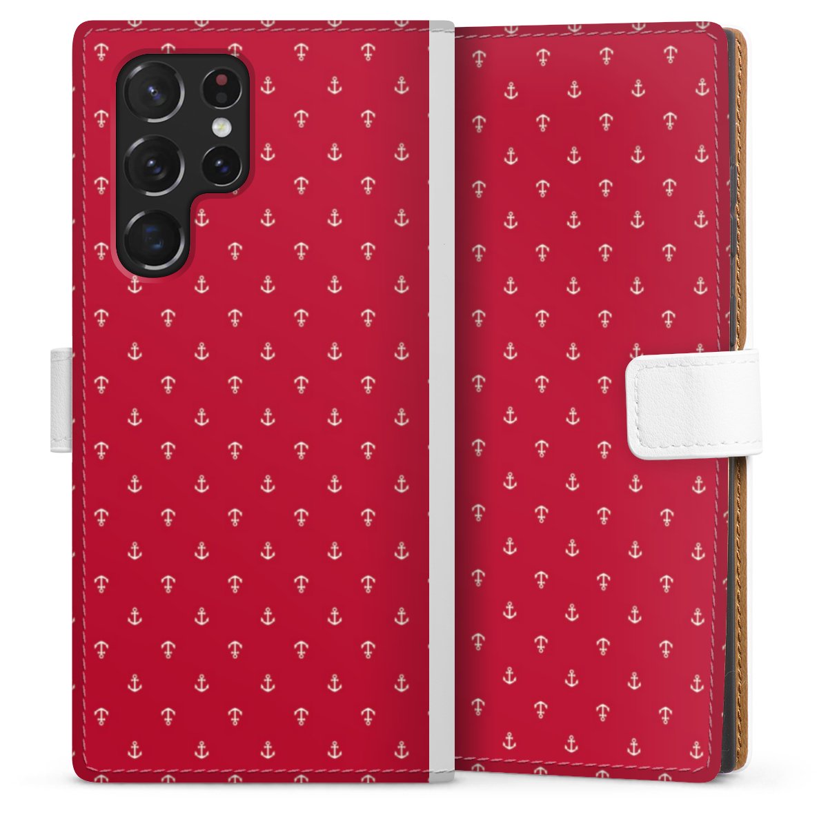 For our Sideflip Case we are using our advanced direct printing technology. The back and frontside are fully printabale, the inside of the phone bag is left unprinted. You can order the phone case without print, printed completely or also with a partial print.