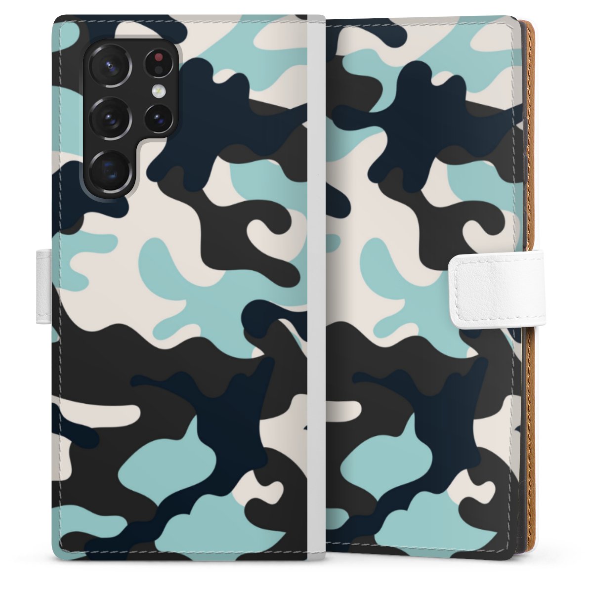 For our Sideflip Case we are using our advanced direct printing technology. The back and frontside are fully printabale, the inside of the phone bag is left unprinted. You can order the phone case without print, printed completely or also with a partial print.