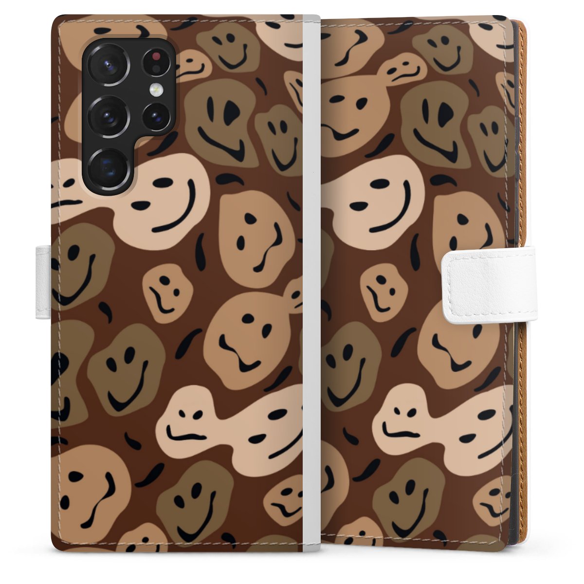 For our Sideflip Case we are using our advanced direct printing technology. The back and frontside are fully printabale, the inside of the phone bag is left unprinted. You can order the phone case without print, printed completely or also with a partial print.