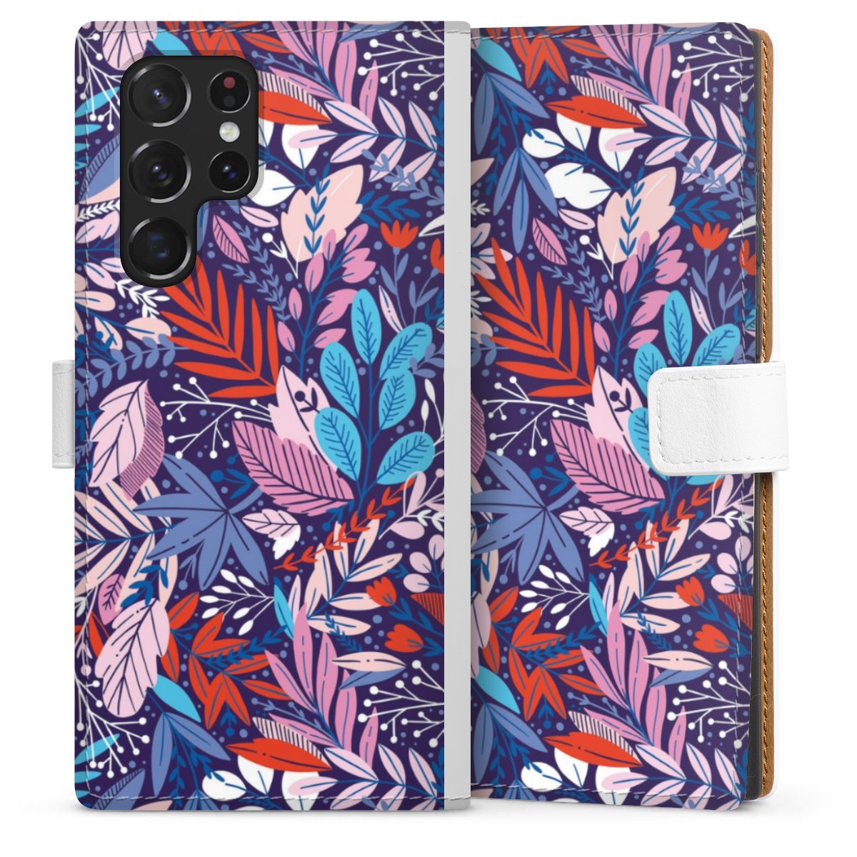 For our Sideflip Case we are using our advanced direct printing technology. The back and frontside are fully printabale, the inside of the phone bag is left unprinted. You can order the phone case without print, printed completely or also with a partial print.
