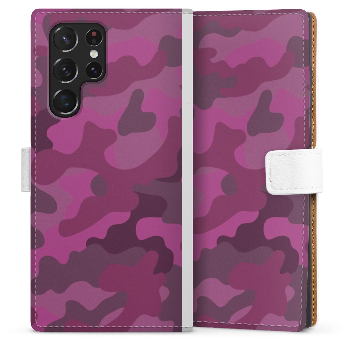 For our Sideflip Case we are using our advanced direct printing technology. The back and frontside are fully printabale, the inside of the phone bag is left unprinted. You can order the phone case without print, printed completely or also with a partial print.
