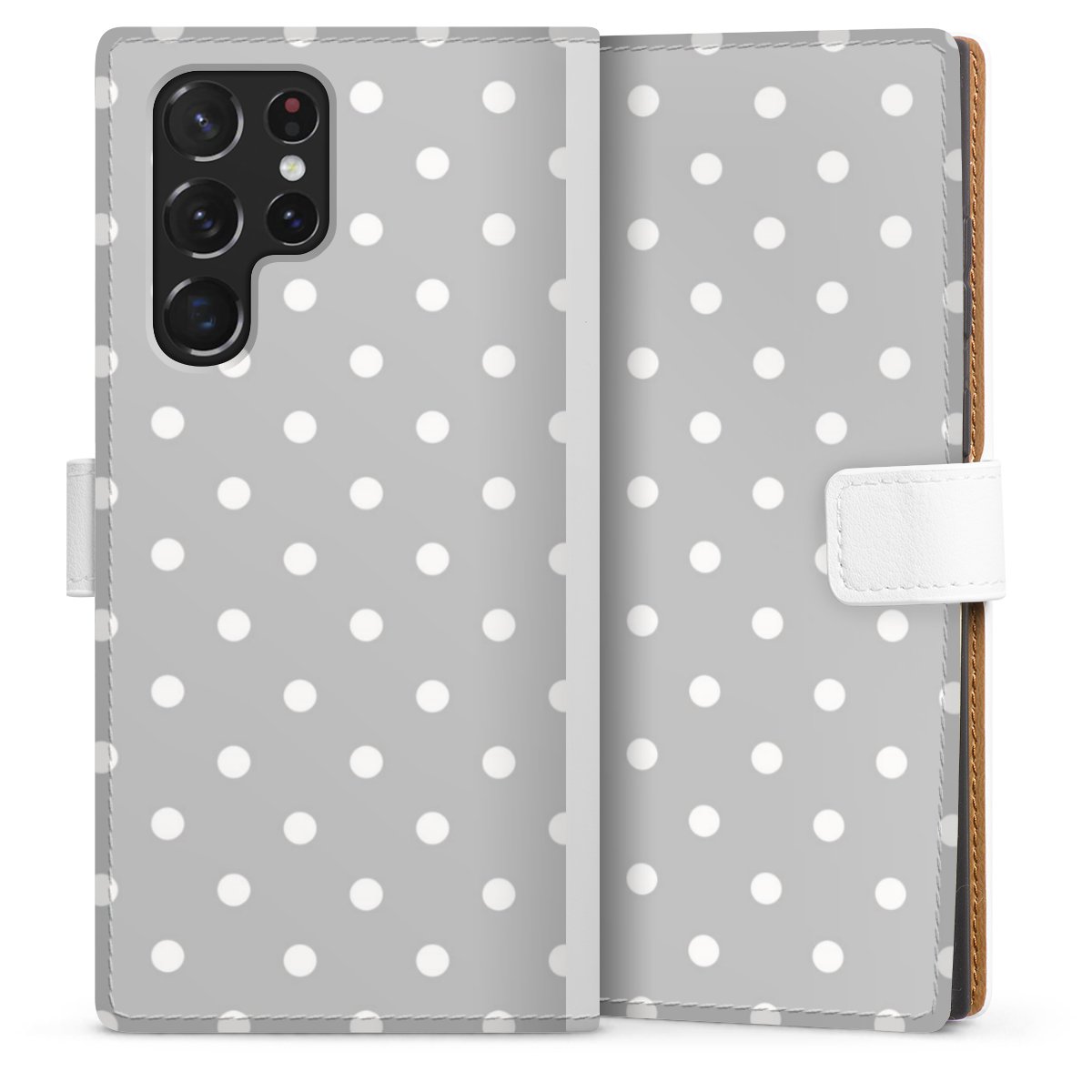 For our Sideflip Case we are using our advanced direct printing technology. The back and frontside are fully printabale, the inside of the phone bag is left unprinted. You can order the phone case without print, printed completely or also with a partial print.