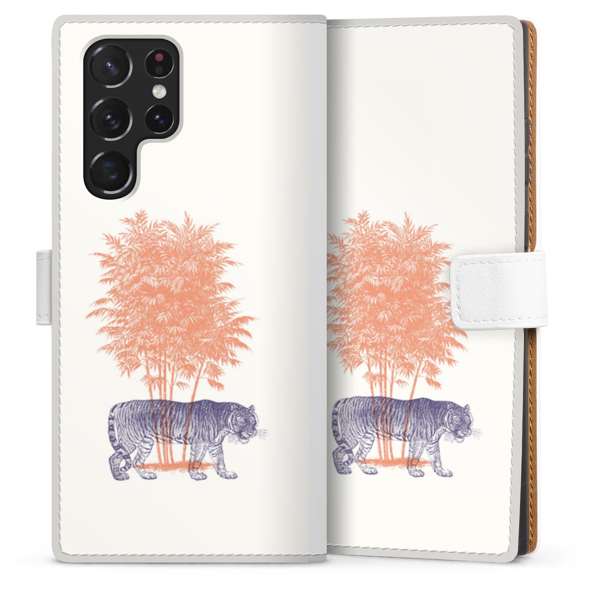 For our Sideflip Case we are using our advanced direct printing technology. The back and frontside are fully printabale, the inside of the phone bag is left unprinted. You can order the phone case without print, printed completely or also with a partial print.