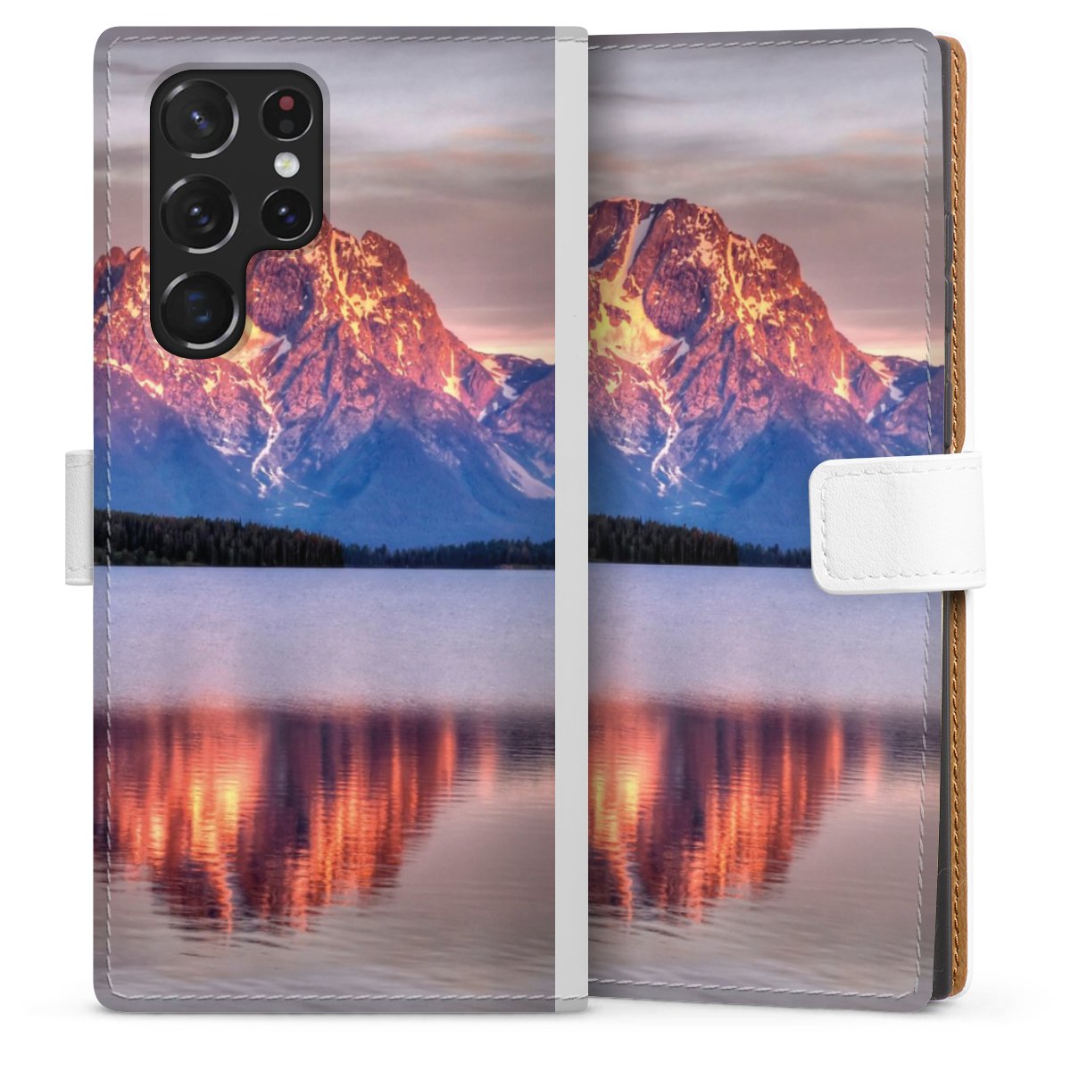 For our Sideflip Case we are using our advanced direct printing technology. The back and frontside are fully printabale, the inside of the phone bag is left unprinted. You can order the phone case without print, printed completely or also with a partial print.