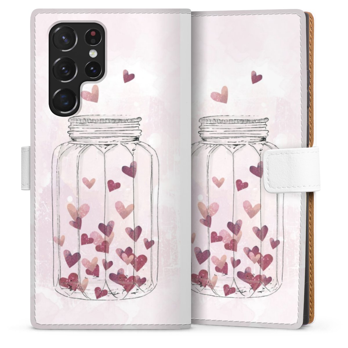 For our Sideflip Case we are using our advanced direct printing technology. The back and frontside are fully printabale, the inside of the phone bag is left unprinted. You can order the phone case without print, printed completely or also with a partial print.