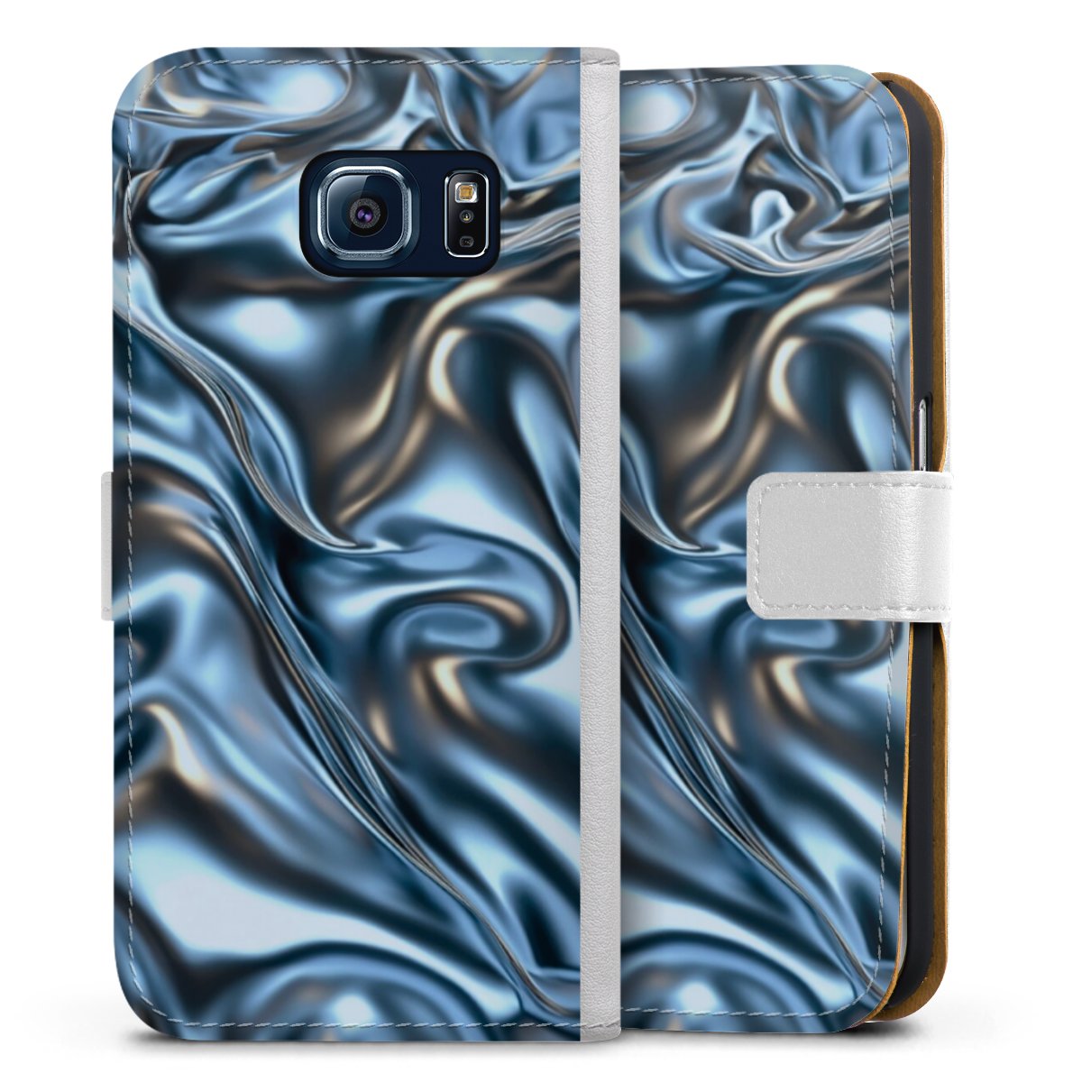 For our Sideflip Case we are using our advanced direct printing technology. The back and frontside are fully printabale, the inside of the phone bag is left unprinted. You can order the phone case without print, printed completely or also with a partial print.