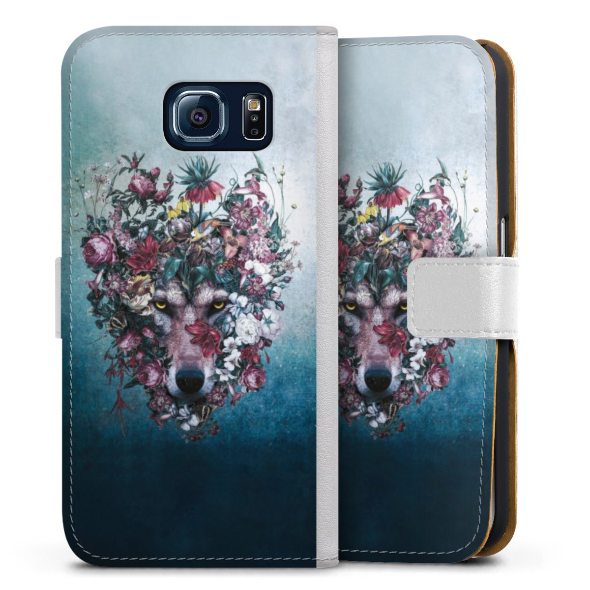 For our Sideflip Case we are using our advanced direct printing technology. The back and frontside are fully printabale, the inside of the phone bag is left unprinted. You can order the phone case without print, printed completely or also with a partial print.