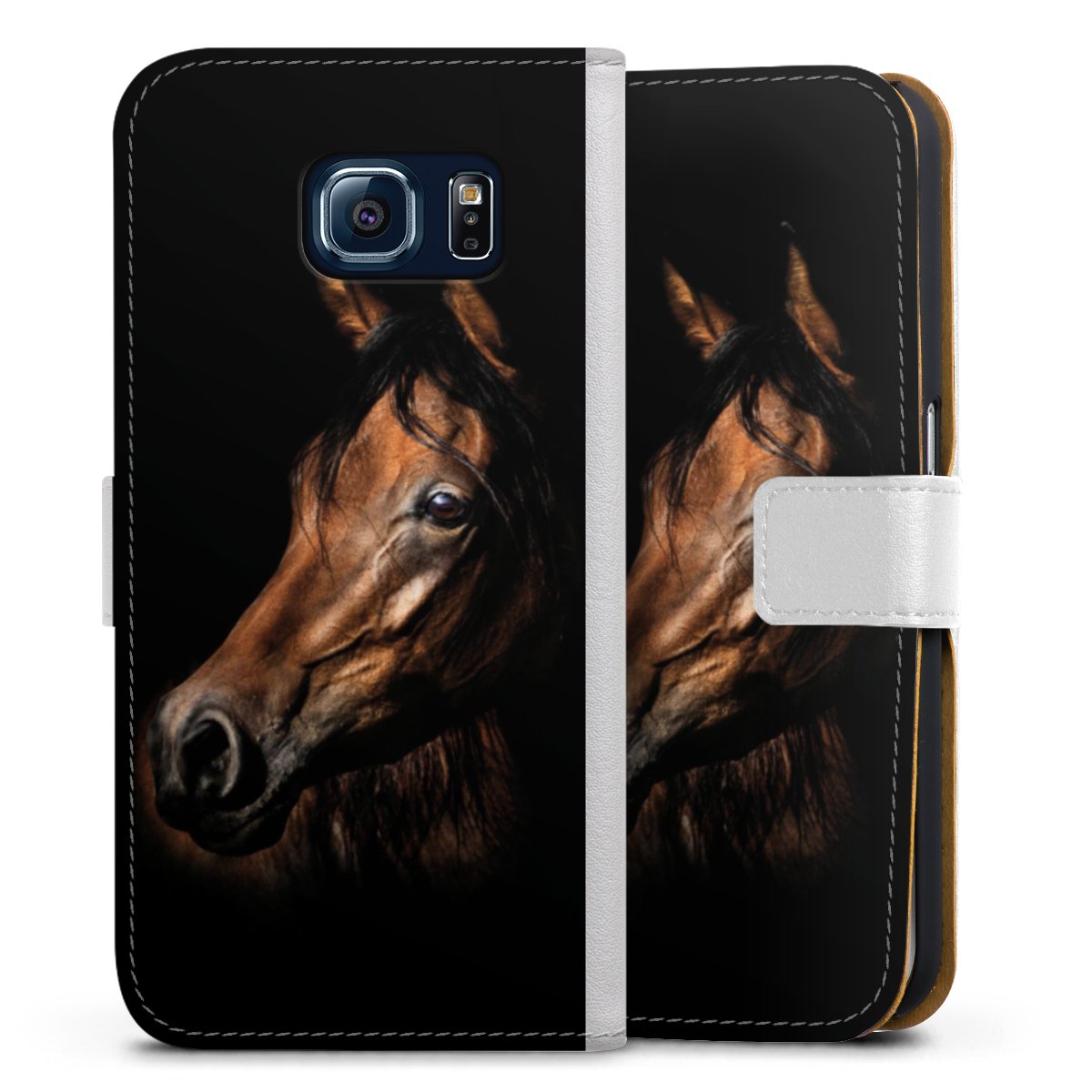 For our Sideflip Case we are using our advanced direct printing technology. The back and frontside are fully printabale, the inside of the phone bag is left unprinted. You can order the phone case without print, printed completely or also with a partial print.
