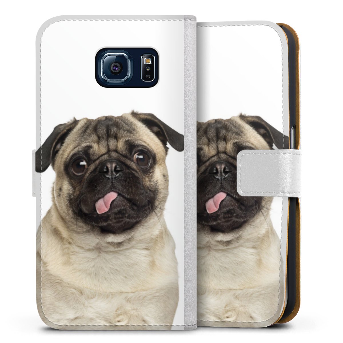 For our Sideflip Case we are using our advanced direct printing technology. The back and frontside are fully printabale, the inside of the phone bag is left unprinted. You can order the phone case without print, printed completely or also with a partial print.