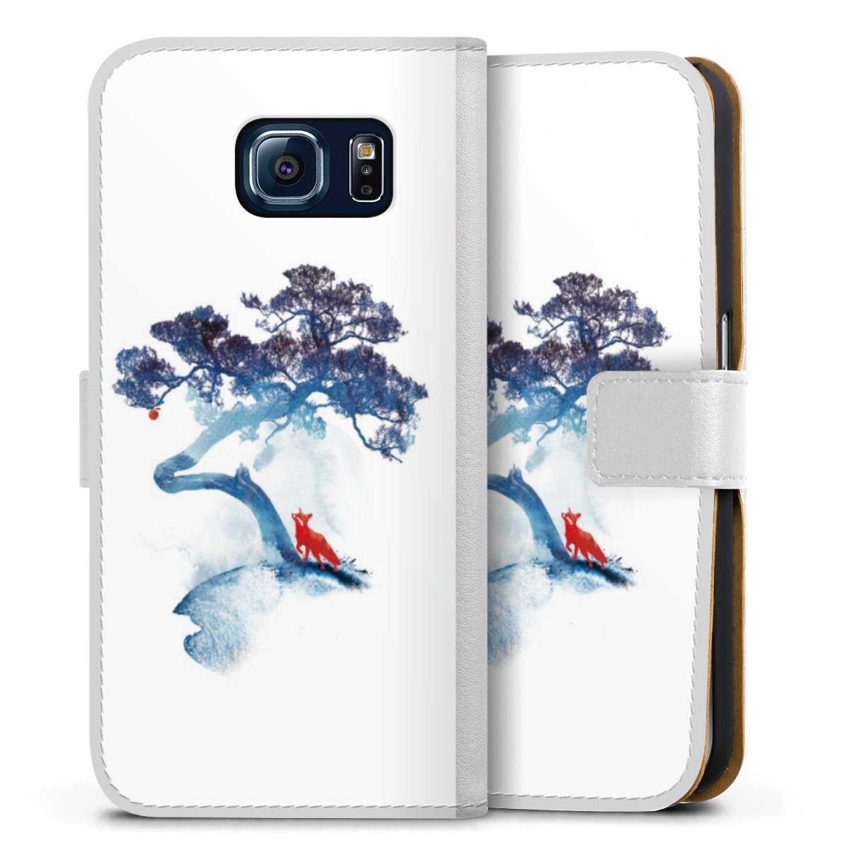 For our Sideflip Case we are using our advanced direct printing technology. The back and frontside are fully printabale, the inside of the phone bag is left unprinted. You can order the phone case without print, printed completely or also with a partial print.