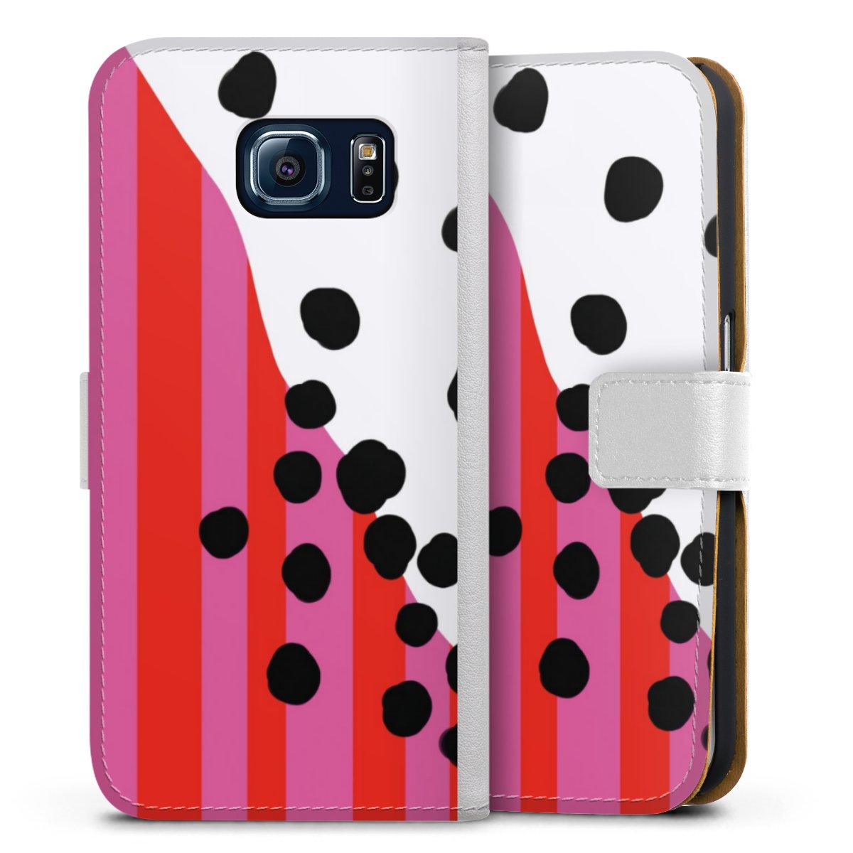 For our Sideflip Case we are using our advanced direct printing technology. The back and frontside are fully printabale, the inside of the phone bag is left unprinted. You can order the phone case without print, printed completely or also with a partial print.