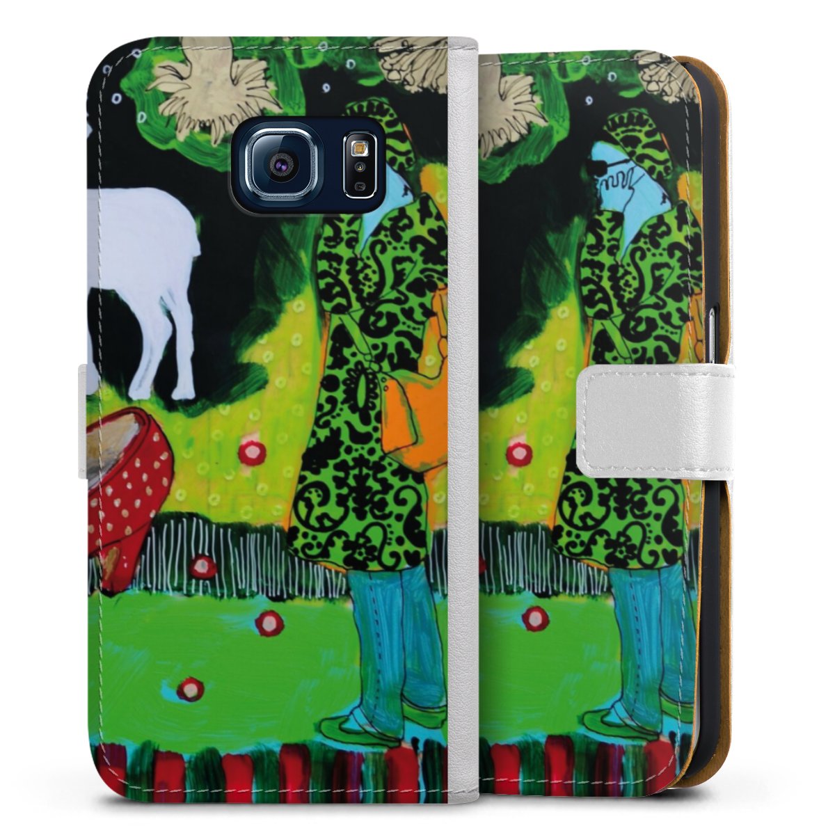 For our Sideflip Case we are using our advanced direct printing technology. The back and frontside are fully printabale, the inside of the phone bag is left unprinted. You can order the phone case without print, printed completely or also with a partial print.