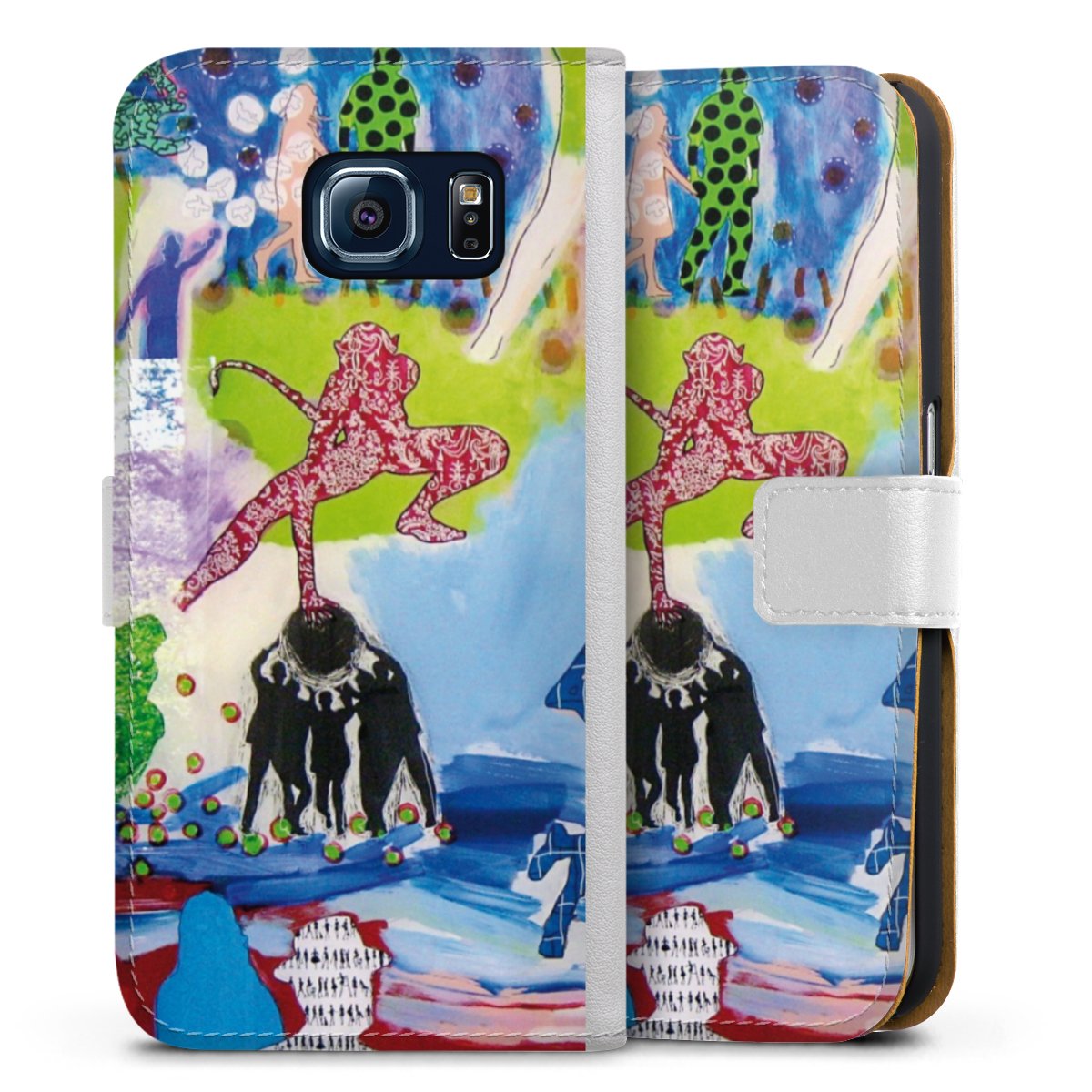 For our Sideflip Case we are using our advanced direct printing technology. The back and frontside are fully printabale, the inside of the phone bag is left unprinted. You can order the phone case without print, printed completely or also with a partial print.