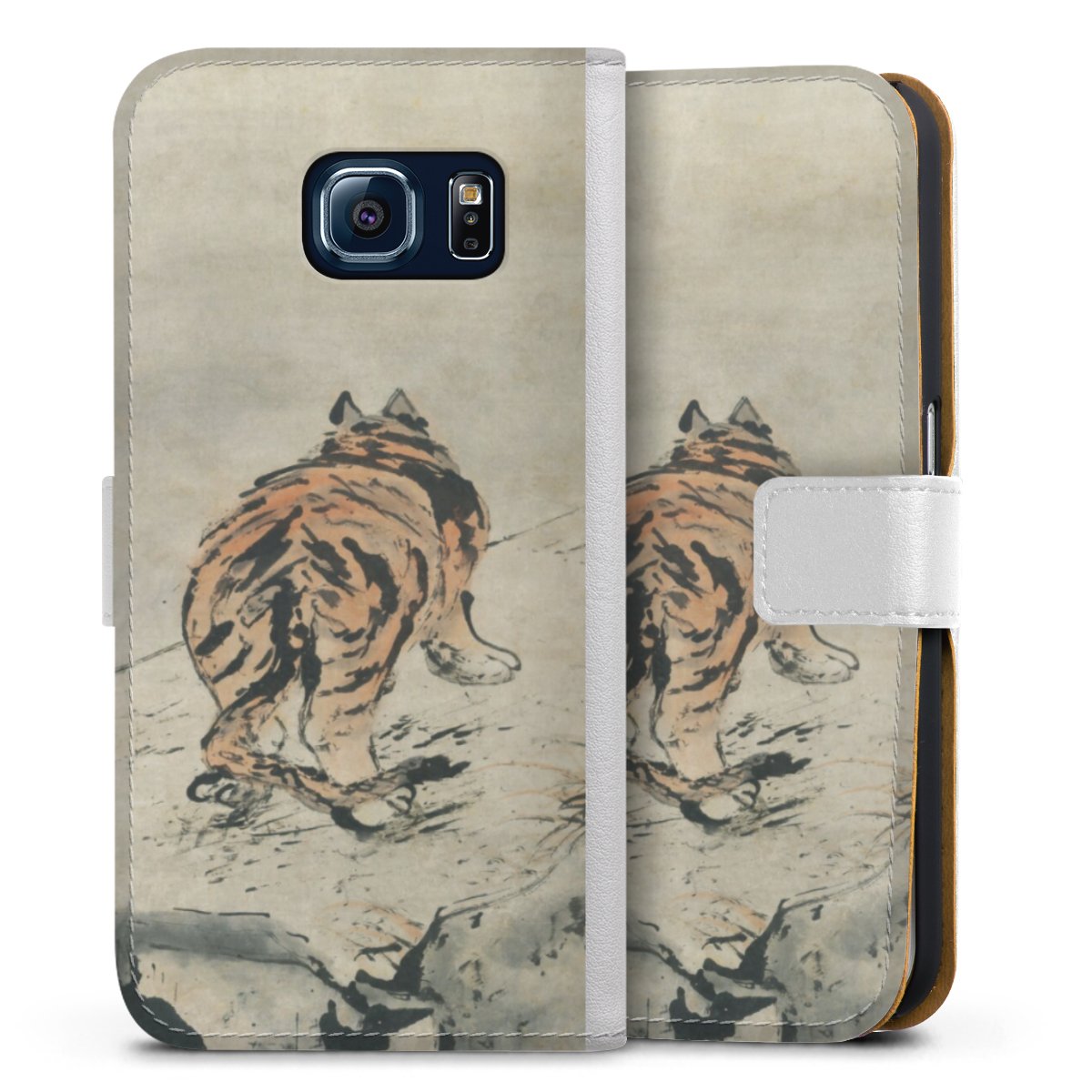 For our Sideflip Case we are using our advanced direct printing technology. The back and frontside are fully printabale, the inside of the phone bag is left unprinted. You can order the phone case without print, printed completely or also with a partial print.