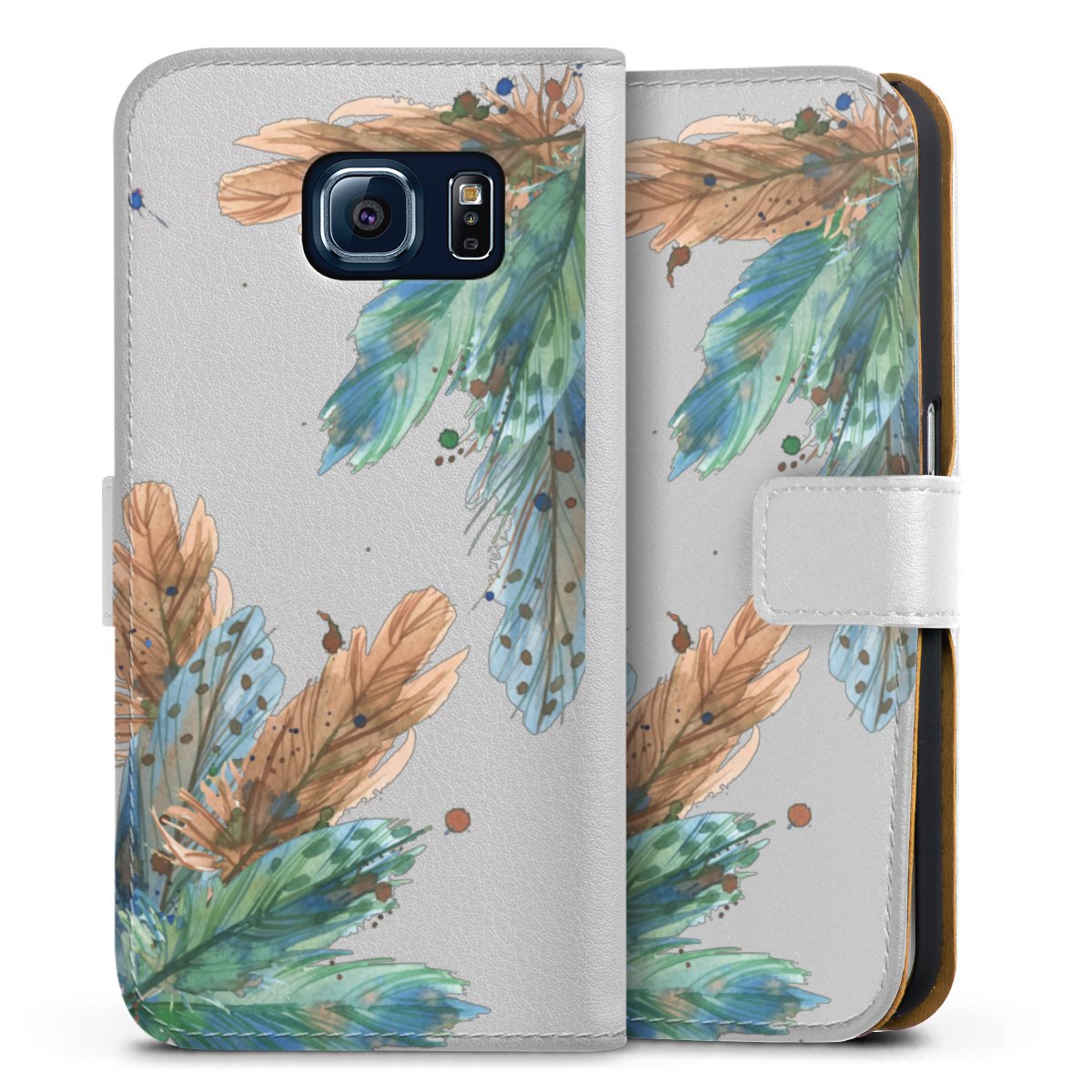 For our Sideflip Case we are using our advanced direct printing technology. The back and frontside are fully printabale, the inside of the phone bag is left unprinted. You can order the phone case without print, printed completely or also with a partial print.