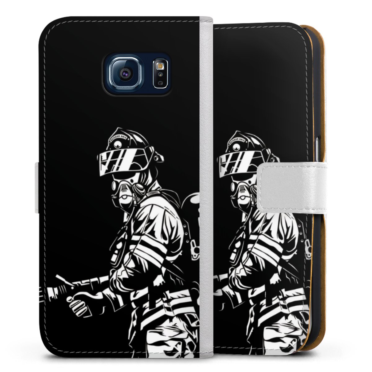 For our Sideflip Case we are using our advanced direct printing technology. The back and frontside are fully printabale, the inside of the phone bag is left unprinted. You can order the phone case without print, printed completely or also with a partial print.