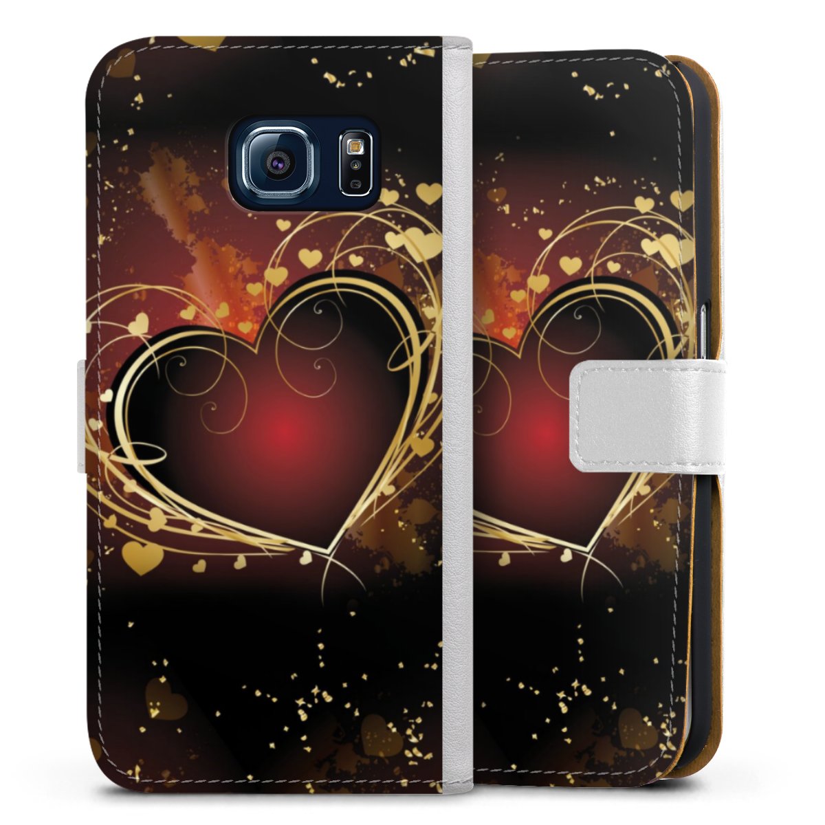 For our Sideflip Case we are using our advanced direct printing technology. The back and frontside are fully printabale, the inside of the phone bag is left unprinted. You can order the phone case without print, printed completely or also with a partial print.