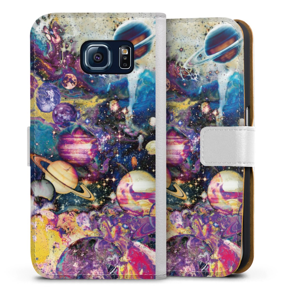 For our Sideflip Case we are using our advanced direct printing technology. The back and frontside are fully printabale, the inside of the phone bag is left unprinted. You can order the phone case without print, printed completely or also with a partial print.