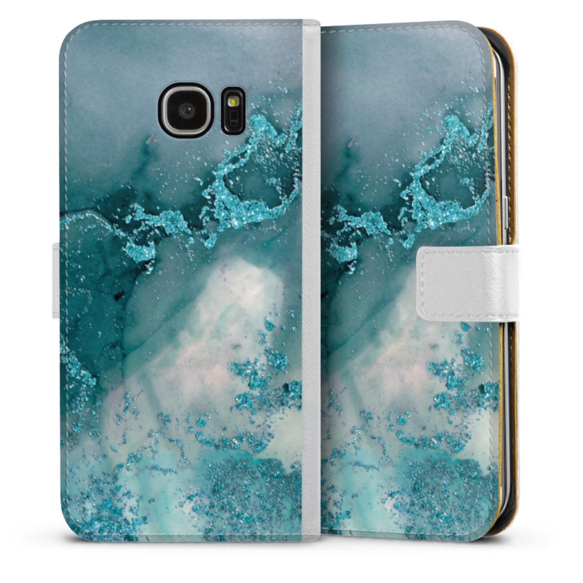For our Sideflip Case we are using our advanced direct printing technology. The back and frontside are fully printabale, the inside of the phone bag is left unprinted. You can order the phone case without print, printed completely or also with a partial print.