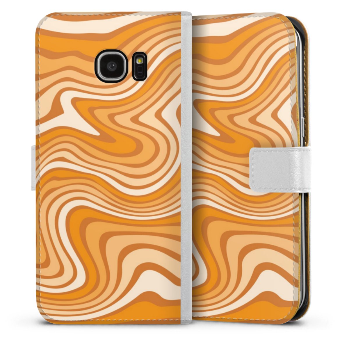 For our Sideflip Case we are using our advanced direct printing technology. The back and frontside are fully printabale, the inside of the phone bag is left unprinted. You can order the phone case without print, printed completely or also with a partial print.