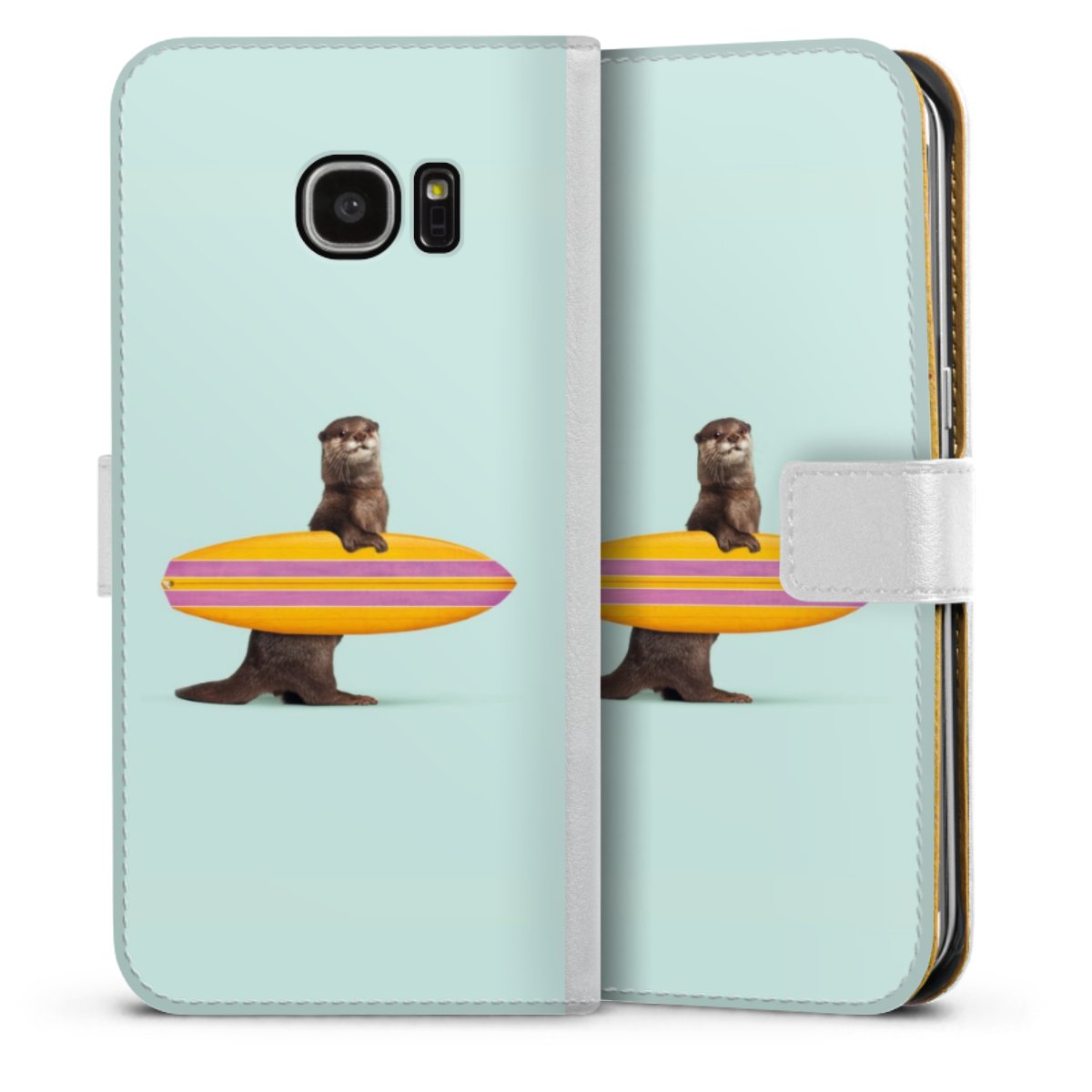 For our Sideflip Case we are using our advanced direct printing technology. The back and frontside are fully printabale, the inside of the phone bag is left unprinted. You can order the phone case without print, printed completely or also with a partial print.