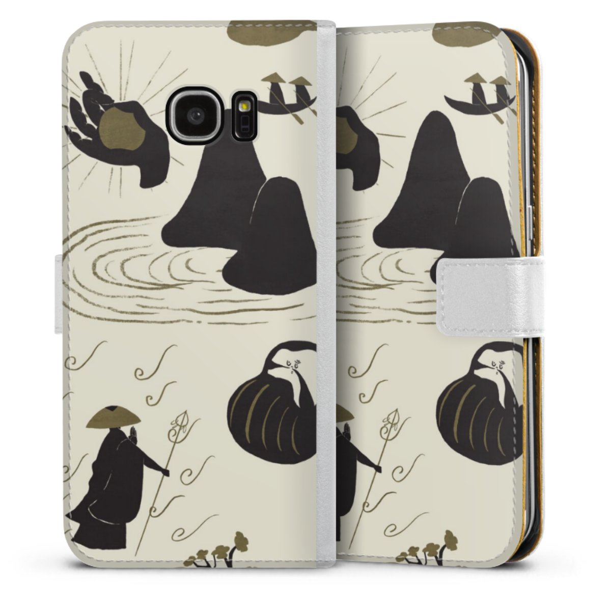 For our Sideflip Case we are using our advanced direct printing technology. The back and frontside are fully printabale, the inside of the phone bag is left unprinted. You can order the phone case without print, printed completely or also with a partial print.