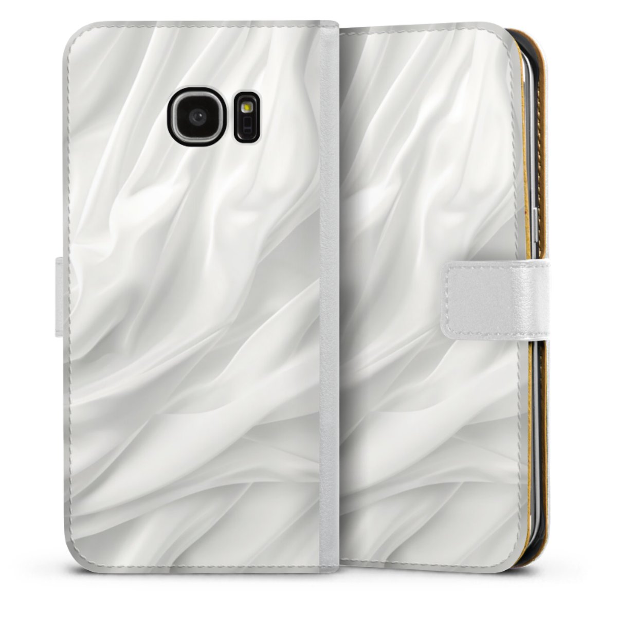 For our Sideflip Case we are using our advanced direct printing technology. The back and frontside are fully printabale, the inside of the phone bag is left unprinted. You can order the phone case without print, printed completely or also with a partial print.