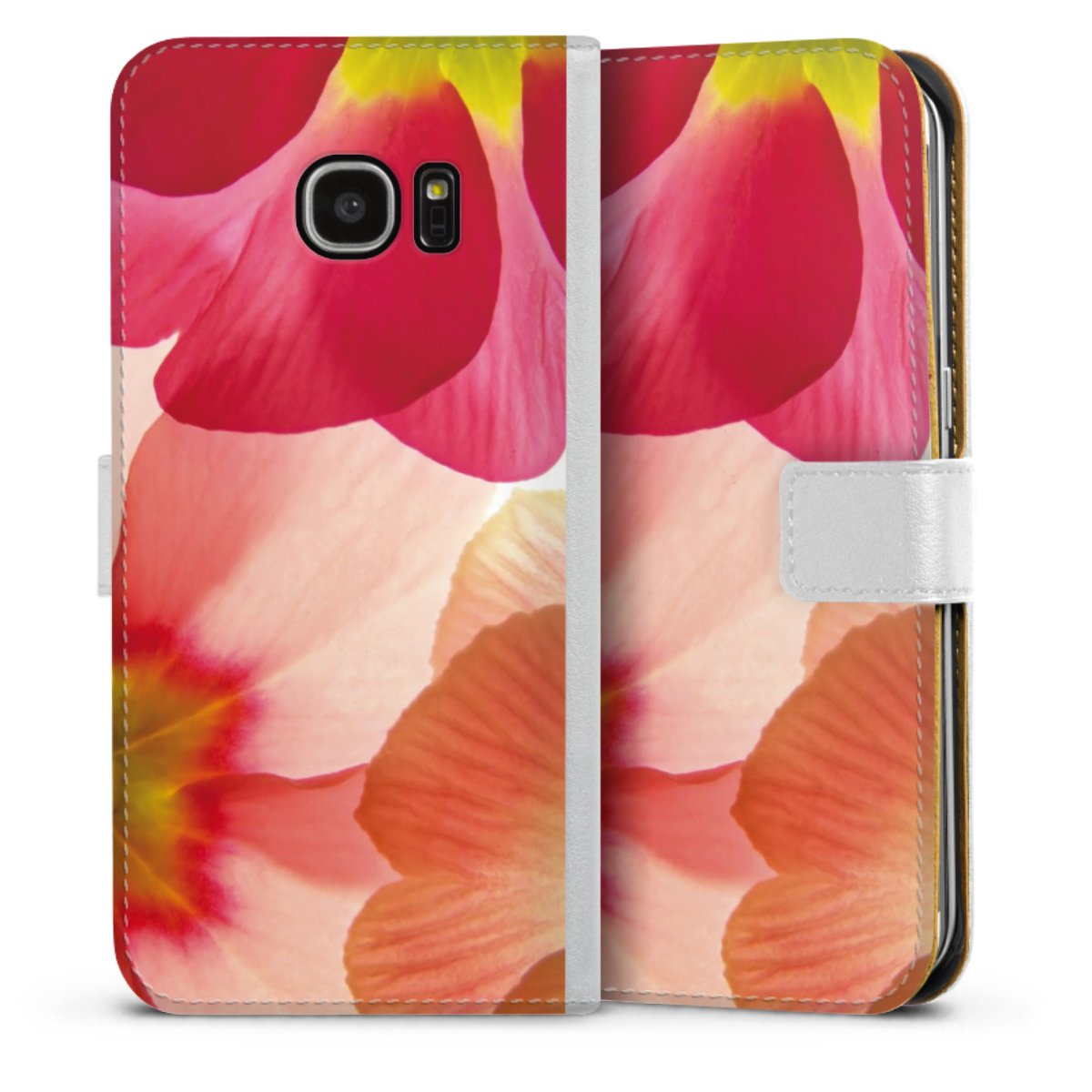 For our Sideflip Case we are using our advanced direct printing technology. The back and frontside are fully printabale, the inside of the phone bag is left unprinted. You can order the phone case without print, printed completely or also with a partial print.