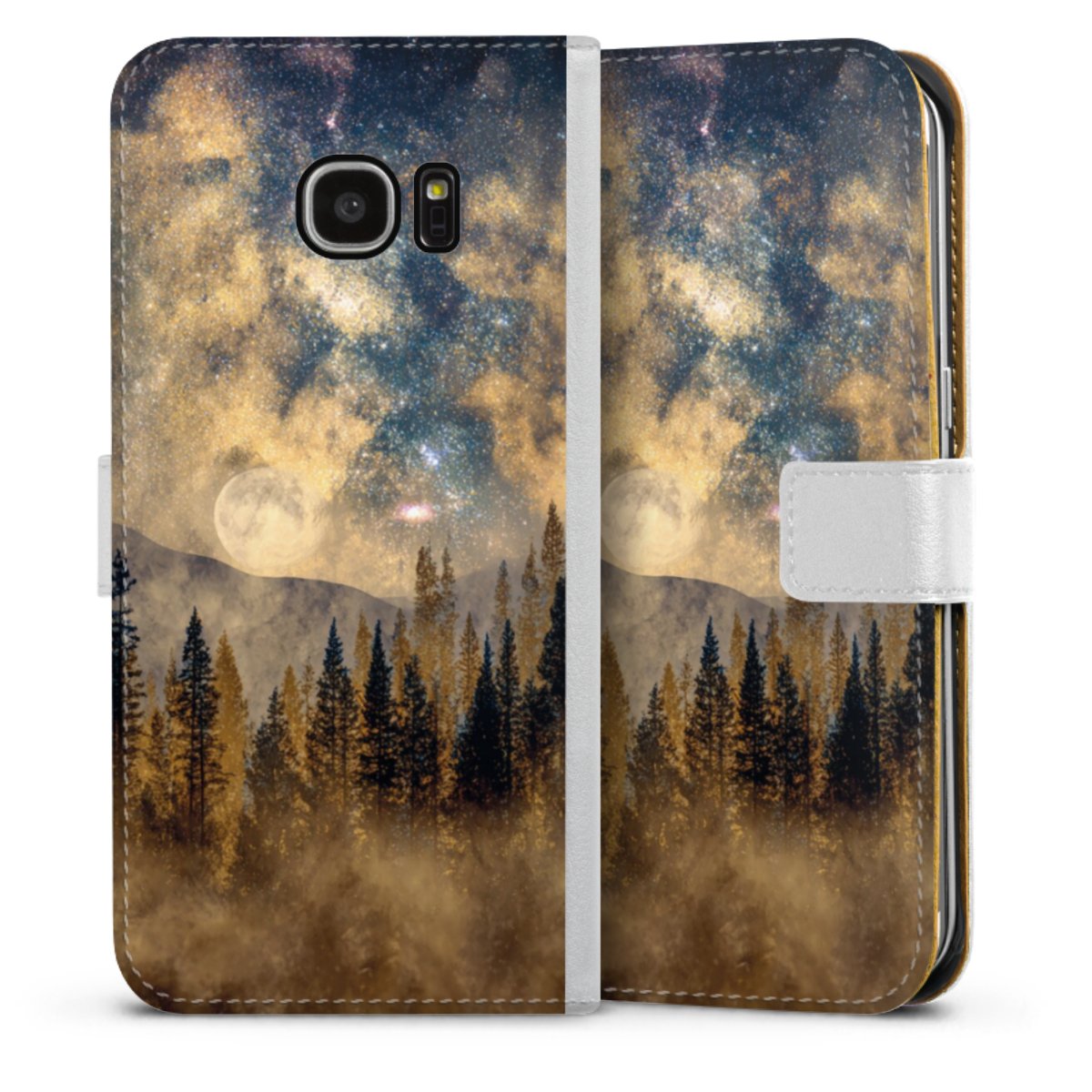For our Sideflip Case we are using our advanced direct printing technology. The back and frontside are fully printabale, the inside of the phone bag is left unprinted. You can order the phone case without print, printed completely or also with a partial print.