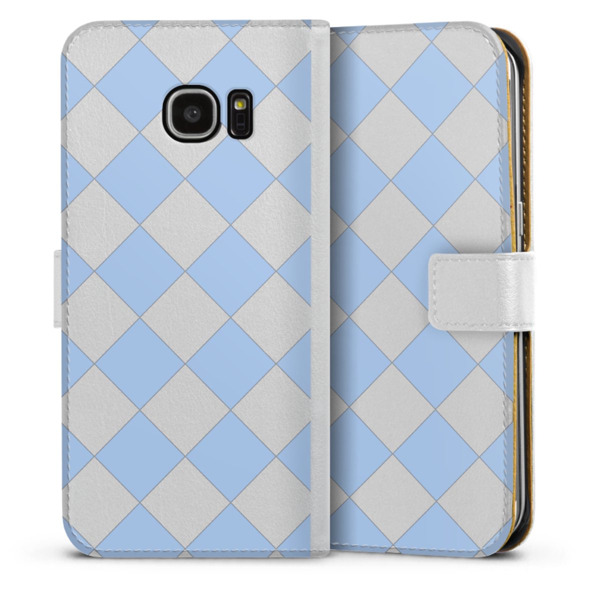 For our Sideflip Case we are using our advanced direct printing technology. The back and frontside are fully printabale, the inside of the phone bag is left unprinted. You can order the phone case without print, printed completely or also with a partial print.