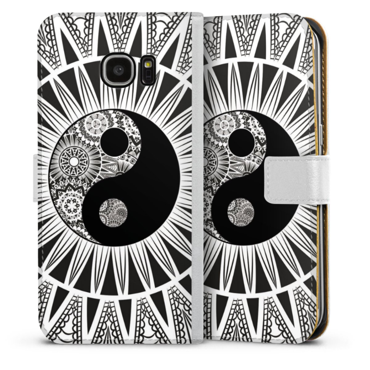 For our Sideflip Case we are using our advanced direct printing technology. The back and frontside are fully printabale, the inside of the phone bag is left unprinted. You can order the phone case without print, printed completely or also with a partial print.