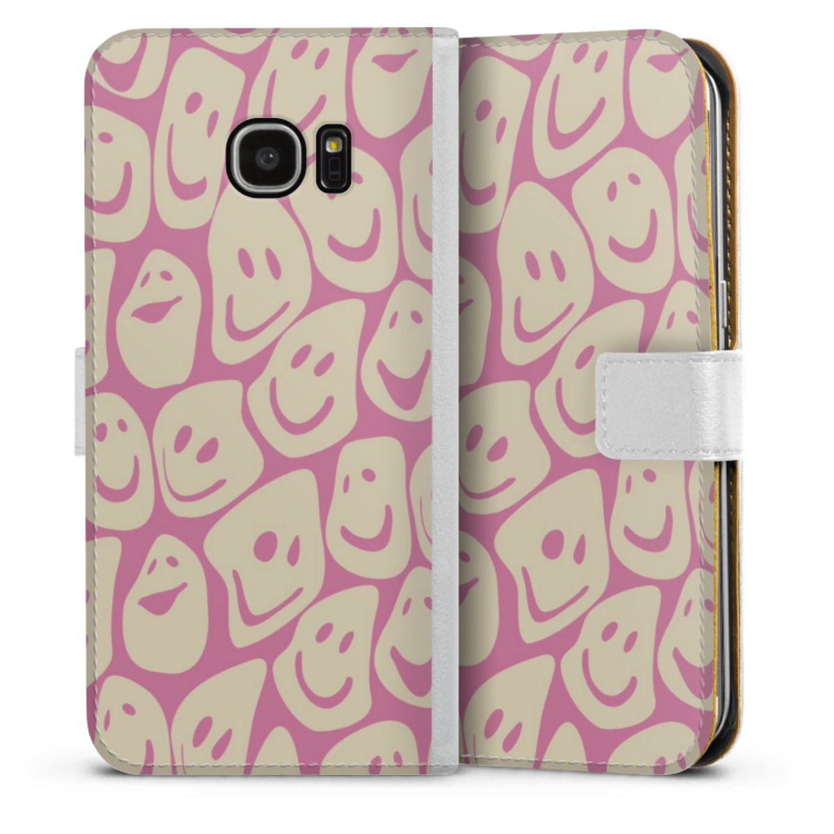 For our Sideflip Case we are using our advanced direct printing technology. The back and frontside are fully printabale, the inside of the phone bag is left unprinted. You can order the phone case without print, printed completely or also with a partial print.