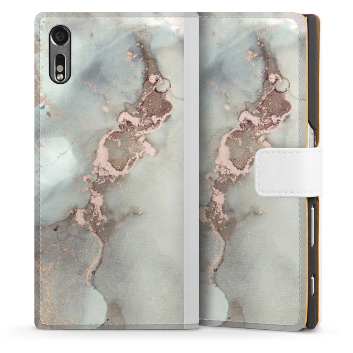 For our Sideflip Case we are using our advanced direct printing technology. The back and frontside are fully printabale, the inside of the phone bag is left unprinted. You can order the phone case without print, printed completely or also with a partial print.