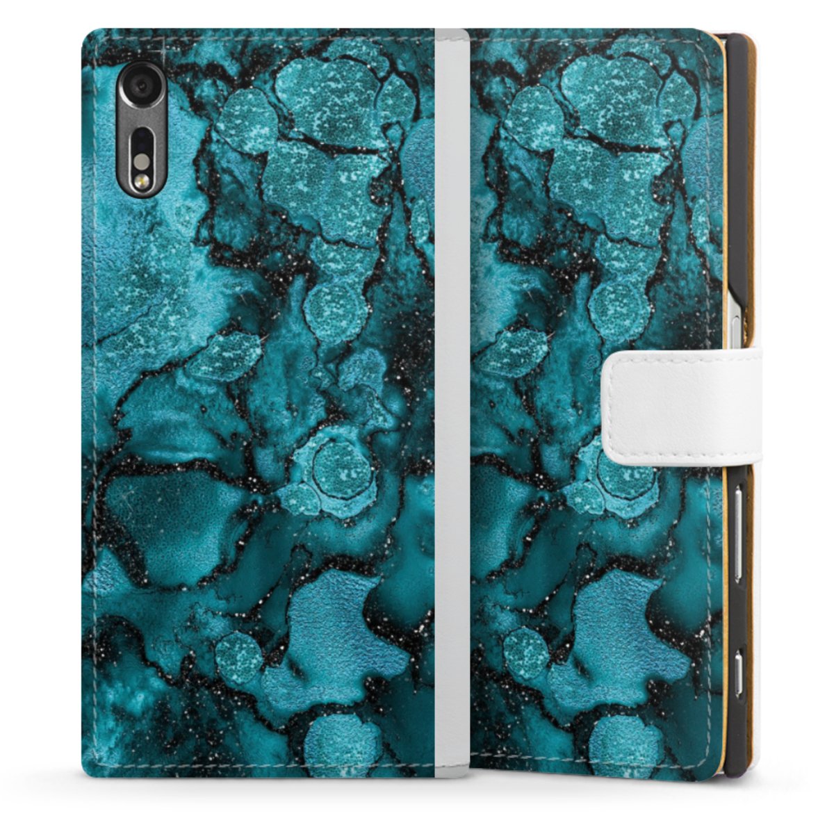 For our Sideflip Case we are using our advanced direct printing technology. The back and frontside are fully printabale, the inside of the phone bag is left unprinted. You can order the phone case without print, printed completely or also with a partial print.