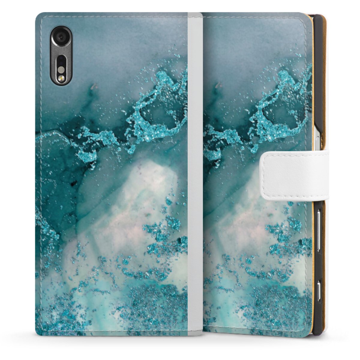 For our Sideflip Case we are using our advanced direct printing technology. The back and frontside are fully printabale, the inside of the phone bag is left unprinted. You can order the phone case without print, printed completely or also with a partial print.